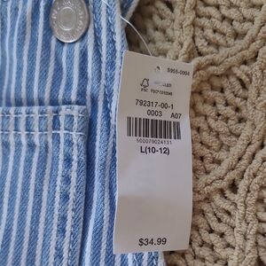 Old Navy Girls Blue and White Striped Denim Shorts Overalls - Size L (10-12)