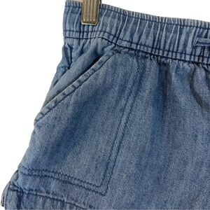 Old Navy Girls Chambray Loose Shorts Size 6/7 Elastic Waist Drawstring Blue Kids Pockets Drawstring