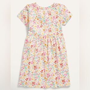 Old Navy Girl’s Cream Floral Short-Sleeve Printed Swing Jersey-Knit Dress 6/7