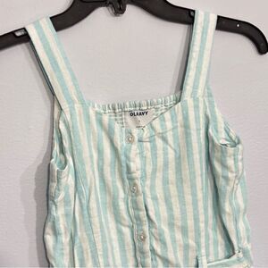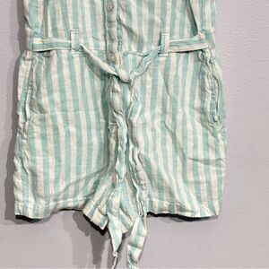Old Navy | Girls Linen Striped Blue White Button Down Romper Jumpsuit Size L