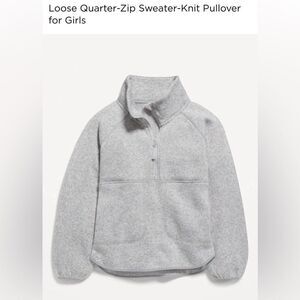 Old Navy Girls Kids Loose Relaxed Fit Quarter-Zip Sweater-Knit Gray Long Sleeve Pullover. 1/4 Zip Sweater. Sweatshirt.