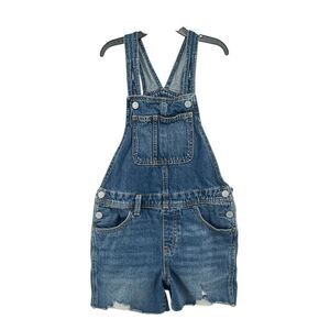 Old Navy Girls Medium Wash Frayed Hem Jean Shortalls Size 8
