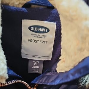 Old Navy Girl's Navy Fleece Quilted Jacket with Faux Fur Hood Size XLarge (14)