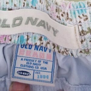 Details: Old Navy girls pale blue shorts with a inside floral waistband they do not have pockets and the drawstring is faux size 5