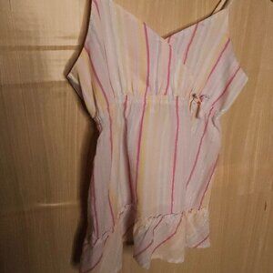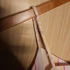 Old Navy girl’s pastel striped adjustable striped tank top large. Gently used condition. Measurements are: 22” from shoulder to hem, and 14 ½" from armpit to armpit.