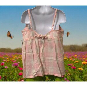 Old Navy Girls Pink Pastel Gingham Tank Top Size L 10-12 Spaghetti Straps Bow