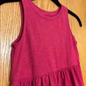 A soft and versatile sleeveless dress from Old Navy in a rich raspberry hue. Lightweight jersey knit fabric makes it perfect for layering or wearing on its own. Easy pullover style ideal for everyday wear, school, or casual outings.