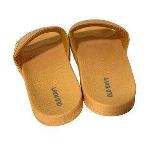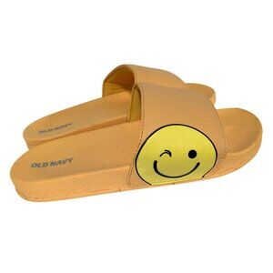 Old Navy Girls Size 3 4 Yellow Smiley Face Smile Sandals Slip on Shoes Slides