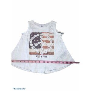 Old Navy Girl's Size 3T Tank Top Sleeveless Wild And Free Flag Graphic White New