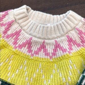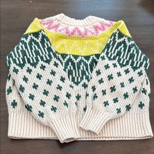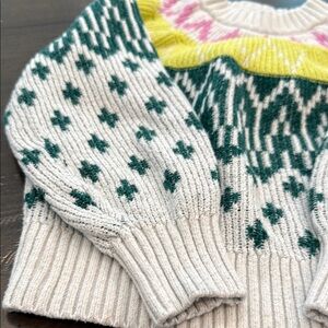 Old Navy Girls Small 6-7 Cream and Green Fair Isle Sweater