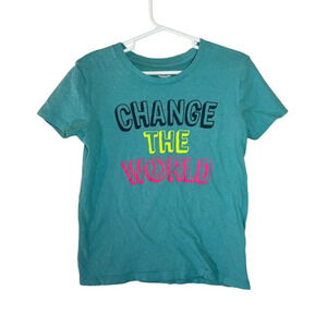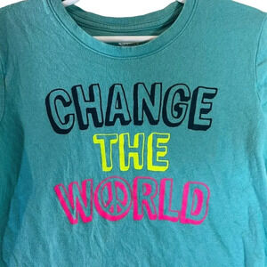 Old Navy Girls T Shirt Small 6-7 Blue Neon Green Pink Change The World Graphic
