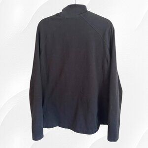 This jacket from Old Navy has a full front zipper and two front zip pockets, as well as two inside pockets, and is mostly cotton with a bit of spandex for stretch. It is not a heavy jacket - thin and not bulky - and would be great as a lightweight layer for chilly mornings. It is pre-owned with a bit of wear but overall in good condition with no flaws (holes/rips etc.) seen. The Go Out Get Active logo is on the front of the jacket near the hem.
