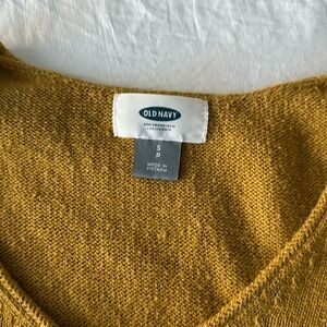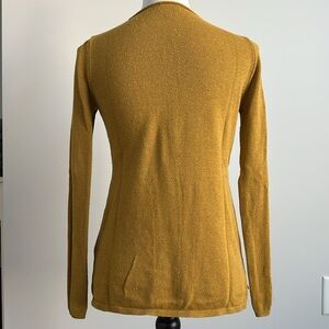 Super cute sweater. In great condition. The color is more of a deep mustard color rather than maybe gold.