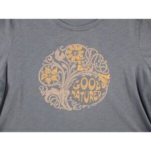 A comfortable and expressive graphic tee that communicates a positive mindset through its intricate floral design and uplifting message. The soft blue heather fabric provides a versatile backdrop for the artfully rendered "Good Natured" text, making it suitable for casual professional environments or weekend relaxation.