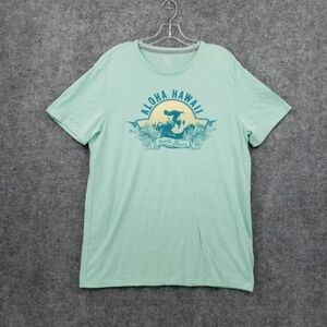 Old Navy T-Shirt Women's Large Aqua Green Soft-Washed Aloha Hawaii Short Sleeves