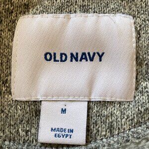 This Old Navy gray pullover sweater combines comfort and style. Made from durable polyester, it features a practical 1/4 zip design and medium fit for versatile wear. Perfect for layering during cooler weather, its neutral gray shade ensures easy pairing with various outfits.