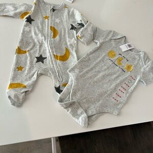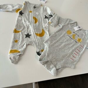 Old Navy Gray Baby Onesie and Pajama Set with Stars and Moons