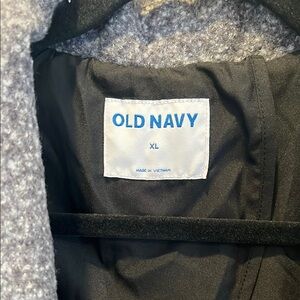 This Old Navy blazer in a sophisticated gray hue is crafted from a textured wool-blend fabric, offering a relaxed and oversized fit. Its structured shoulders and notched lapels add a touch of elegance, making it a versatile choice for both casual and semi-formal occasions.