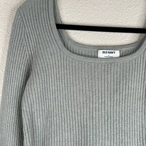 Old Navy Gray Blue Ribbed Square Neck Long Sleeve Cropped Sweater