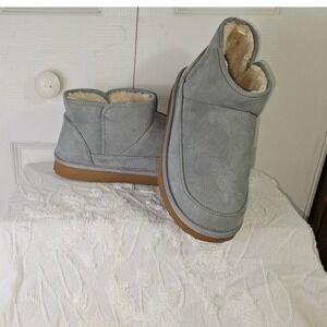 Old Navy Gray Faux Suede Fur Lined Cozy Warm Winter Ankle Boots 6.5