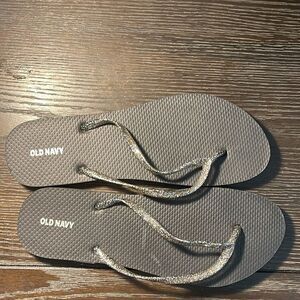(Have worn a few times) Stylish gray flip flops from Old Navy. Features shimmering silver straps.