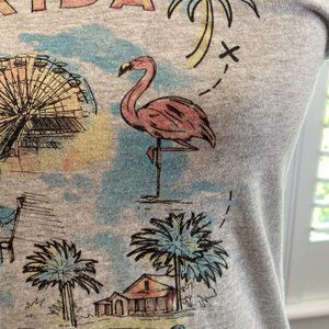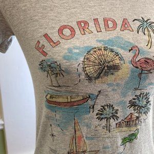 Old Navy Gray Florida Vintage Graphic T-Shirt with Flamingo Alligator Sailboat