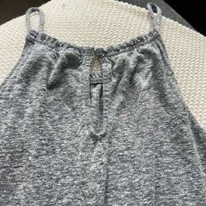 This Old Navy jumpsuit in a versatile gray hue features a halter neckline and an elastic waist for a comfortable fit. Made from a soft, stretchy fabric, it offers a relaxed and casual style perfect for everyday wear. The loose-fitting shorts add to its laid-back appeal, making it a go-to choice for effortless fashion.