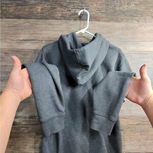 Stylish gray hoodie by Old Navy. Features bold white stripes on sleeves. Perfect for casual wear.