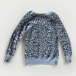 Old Navy Gray Leopard Print Sweater XS Women’s Long Sleeve Crewneck Knit Top