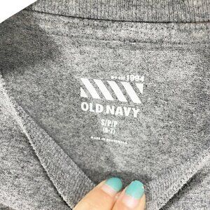 old navy boys size small 6-7 gray long sleeved shirt. crew neck, "watchtower security" graphic print and in good condition. Small spot on the bottom shown above. easy everyday basic