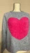 Soft gray sweater with a striking pink heart. Ideal for cozy style.