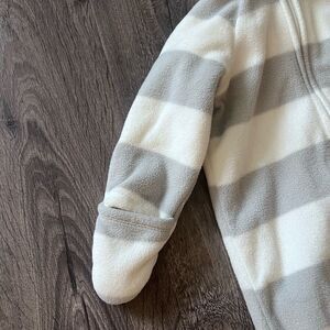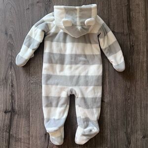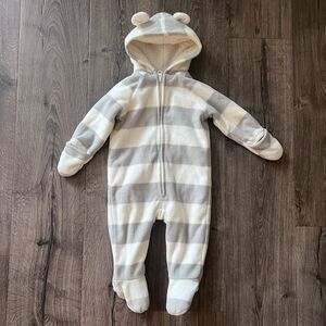 Cozy one piece with hood and bear ears. Features a full front zipper. Perfect for keeping little ones warm.