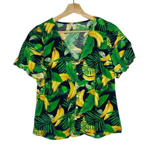 Old Navy Green Banana Lime Print Button Front Short Sleeve Top S