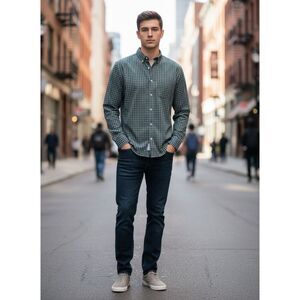 Old Navy Green & Gray Plaid Long Sleeve Button Down Shirt Size L