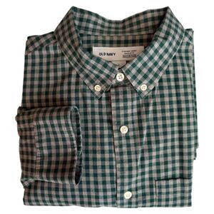 Old Navy Green & Gray Plaid Long Sleeve Button Down Shirt