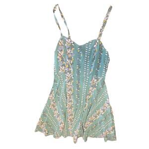 Old Navy Green, Pink Yellow Flowers Ruched Back Spaghetti Strap XS Slip Dress