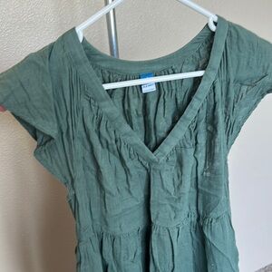 Old Navy Green Pleated Flutter Sleeve Sundress
