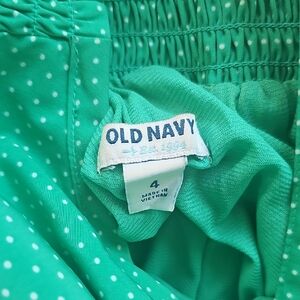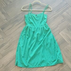 Stylish green dress with playful polka dots. Ideal for casual outings. Adjustable straps and smocked back. Wrinkle resistant fabric in nearly new condition.
