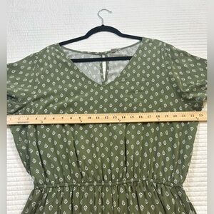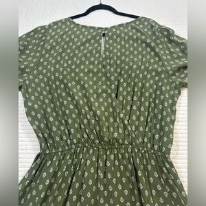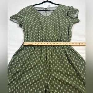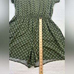This Old Navy shorts romper showcases a soothing green color with a relaxed fit and delightful ruffled accents. The romper- style design offers a comfortable and stylish silhouette, perfect for everyday wear. Its lightweight fabric ensures a breezy and airy feel, ideal for warm days.