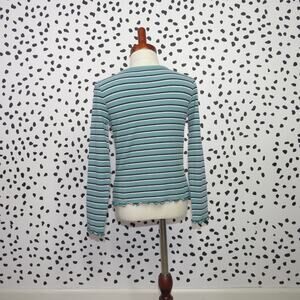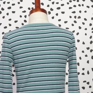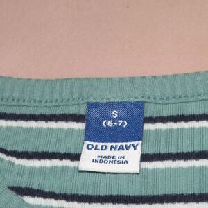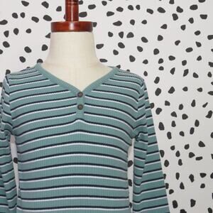 Old Navy Green Ribbed Striped Long Sleeve Girls Henley Top
