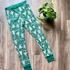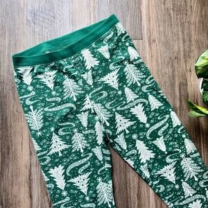 Old Navy Green Thermal-Knit Pajama Leggings Holiday Christmas Tree Print Size S