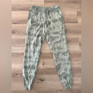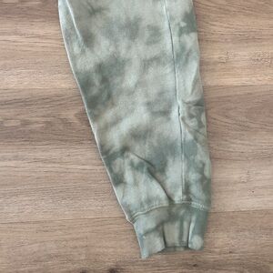 These Old Navy joggers are your go-to for cozy style with a trendy twist. Featuring a soft fleece lining, green tie-dye wash, adjustable drawstring waist, and ribbed cuffs, they offer comfort and casual style. Size Small Tall. Like new condition—worn once or twice, no flaws.
