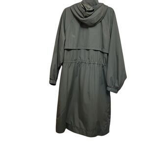 Long Sleeve Fully Lined Hooded Coat. Front Pockets and Side Slits. Zipper and Snap Closure. Length 44”. Chest 25". R