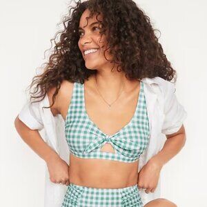 Old Navy Green & White Tie Front Keyhole Opening Size L NWOT