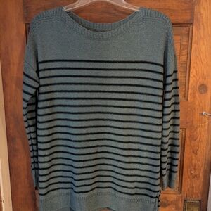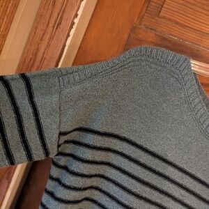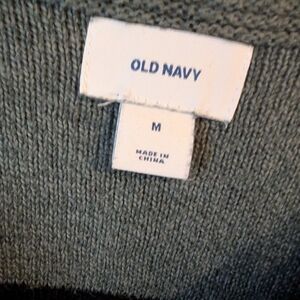 This Old Navy sweater features a classic crew neck design with a stylish green and black striped pattern. Made from a comfortable knit material, it offers a relaxed fit perfect for cooler weather. The long sleeves and medium-weight fabric make it an ideal choice for casual outings.