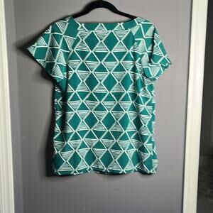 Old Navy Green and White Geometric Print Short Sleeve Blouse Size Small
