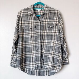 Old Navy Grey Plaid The Boyfriend Button Down Shirt Size Small