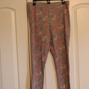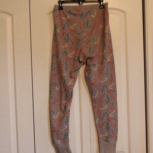 Old Navy Grey Waffle Knit Thermal Leggings PJ Pants Candy Canes Size XL Lounge