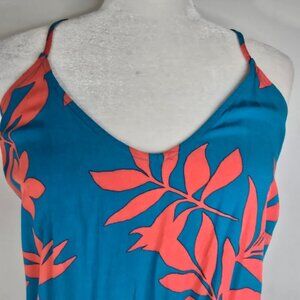 Old Navy Hawaiian Halter Maxi Shift Dress in Teal Coral Pink FLoral