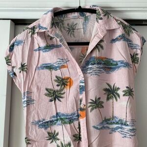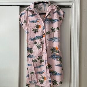 Old Navy Hawaiian Shirt Dress, XS, button-down, perfect for Hawaiian or hula party, Pink with a beach sunset print